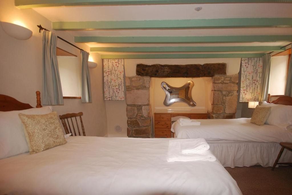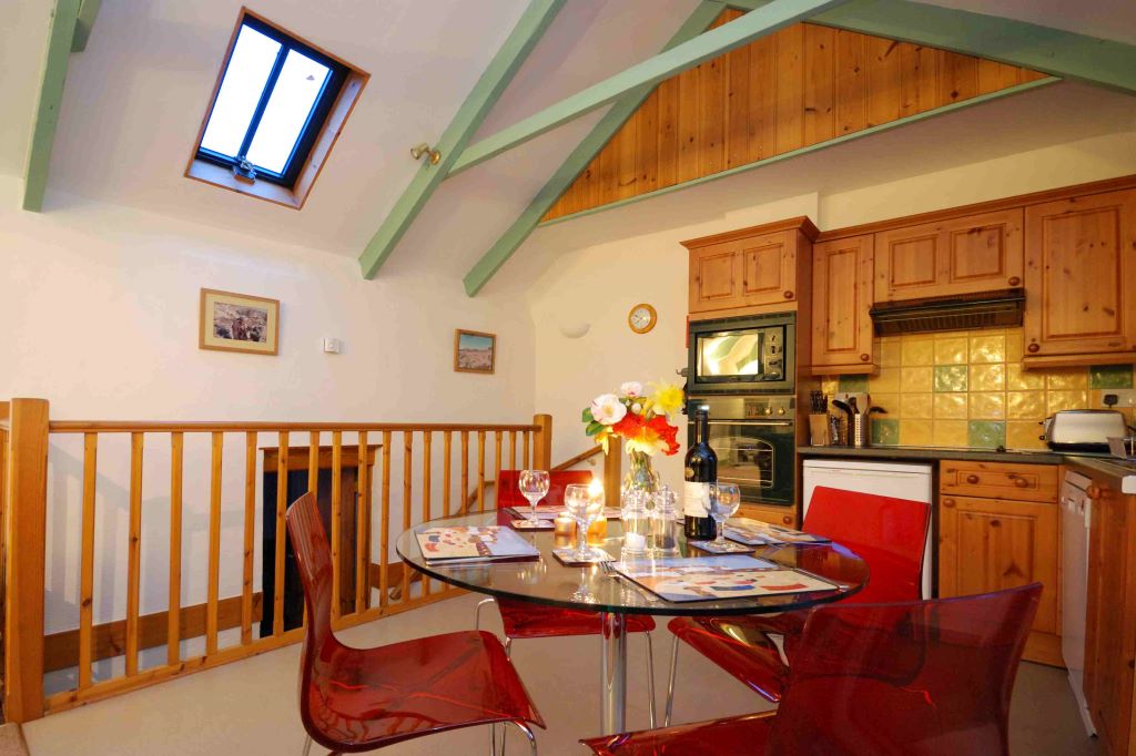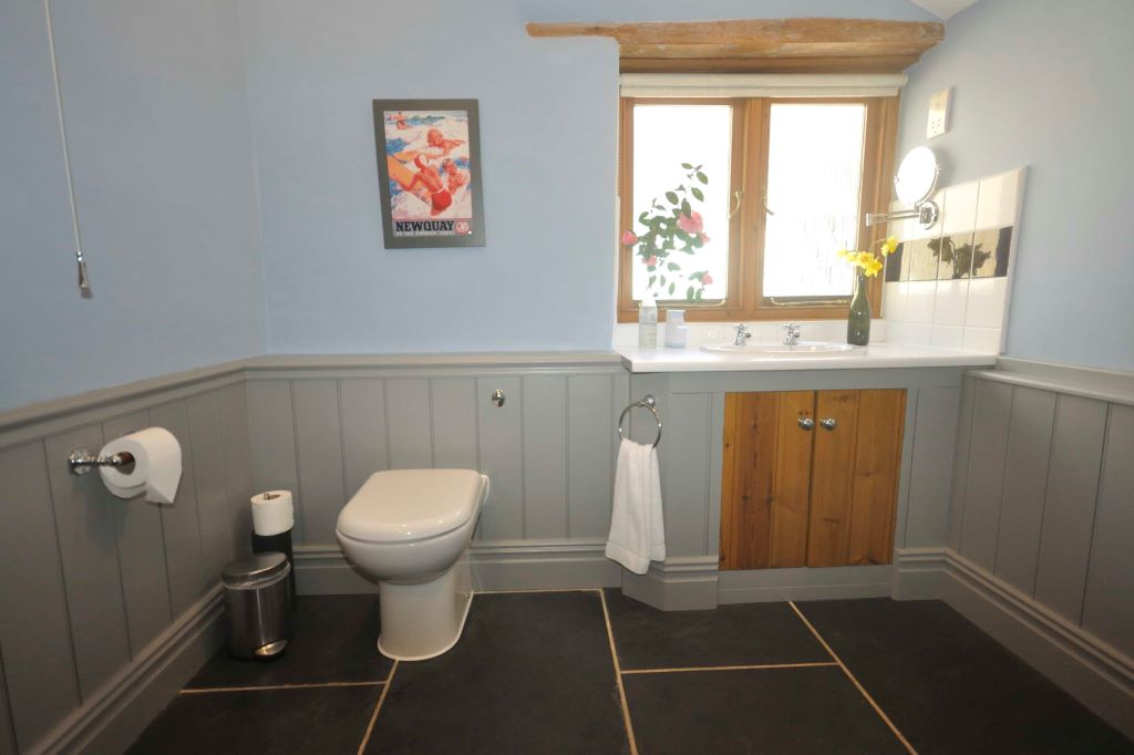 The Granary is a converted agricultural building partially built into the hillside made of brick, stone and cob, retaining many original features. The accommodation is set out in reverse order, with the first floor entrance through stable doors into an open plan living room and kitchen. The roof space has been opened up exposing the timbers. The spacious bathroom is situated between the first and ground floors, it has a double ended bath with shower over. There are two bedrooms downstairs, a double with a king size bed and a twin room with two single beds. Dog friendly, the holiday cottage is a great place to base your Cornish self catering holiday.